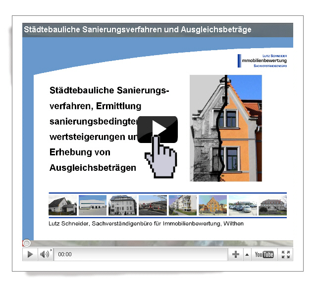 Für alle Interessierten, die tiefer in das Thema städtebauliche Sanierung einsteigen wollen – also betroffene Grundstückseigentümer, Mitglieder von Bürgerinitiativen und Vereinen, Rechtsanwälte – natürlich auch Mitarbeiter von kommunalen Verwaltungen – aber auch Mitarbeiter und Mitglieder von Gutachterausschüssen sowie Gutachtern bieten wir hier demnächst ein umfassendes Videoseminar zum Thema städtebauliche Sanierung und Ausgleichsbeträge an.